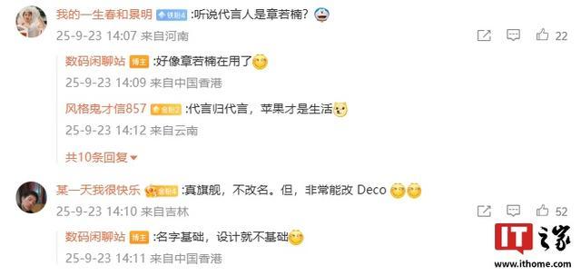 有用户询问新机代言人是否为章若楠,博主表示“好像章若楠在用了 [可爱滑稽]”,此举暗示了真我 GT8 系列手机的代言人为章若楠。另外,博主还总结“名字基础,设计就不基础 [可爱滑稽]”。