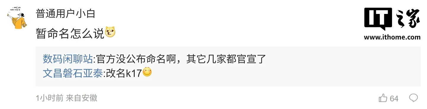 ”,博主回复道:“官方没公布命名啊,其它几家都官宣了”;另一名用户则询问道:“看这个 IQ15U 今年无望了