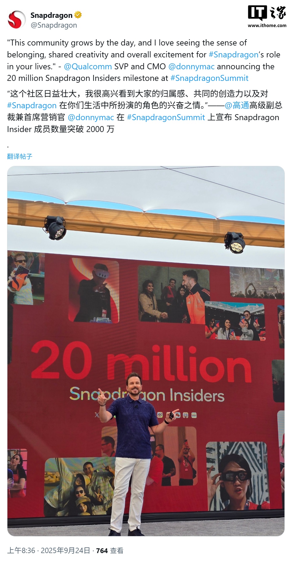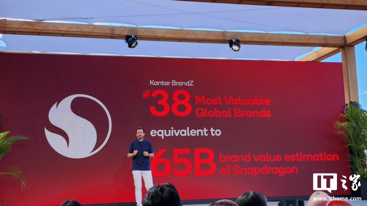 IT之家 9 月 24 日消息,在今天召开的高通骁龙峰会 2025 活动中,高通资深副总裁 Don McGuire 表示,骁龙(Snapdragon)品牌价值首次打入 Kantar BrandZ 全球最有价值品牌排行榜,跃居第 38 位,品牌价值预估为 650 亿美元,超越包括迪士尼在内的多家企业。