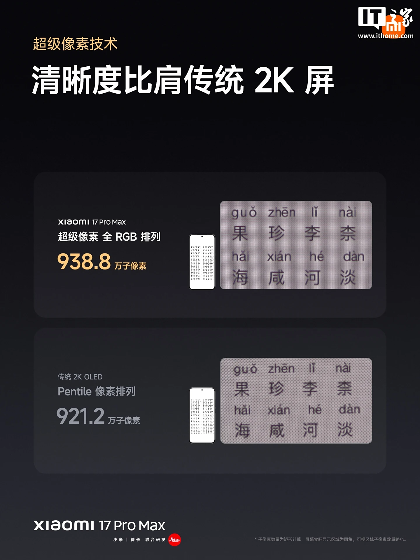 小米 17Pro Max 搭载 6.9″超大直屏旗舰;屏幕采用超级像素技术,清晰度比肩传统 2K 屏,但比传统 2K 屏省电,甚至比 1.5K 屏功耗更低,采用第三代小米龙晶玻璃,抗跌落能力大大提升。