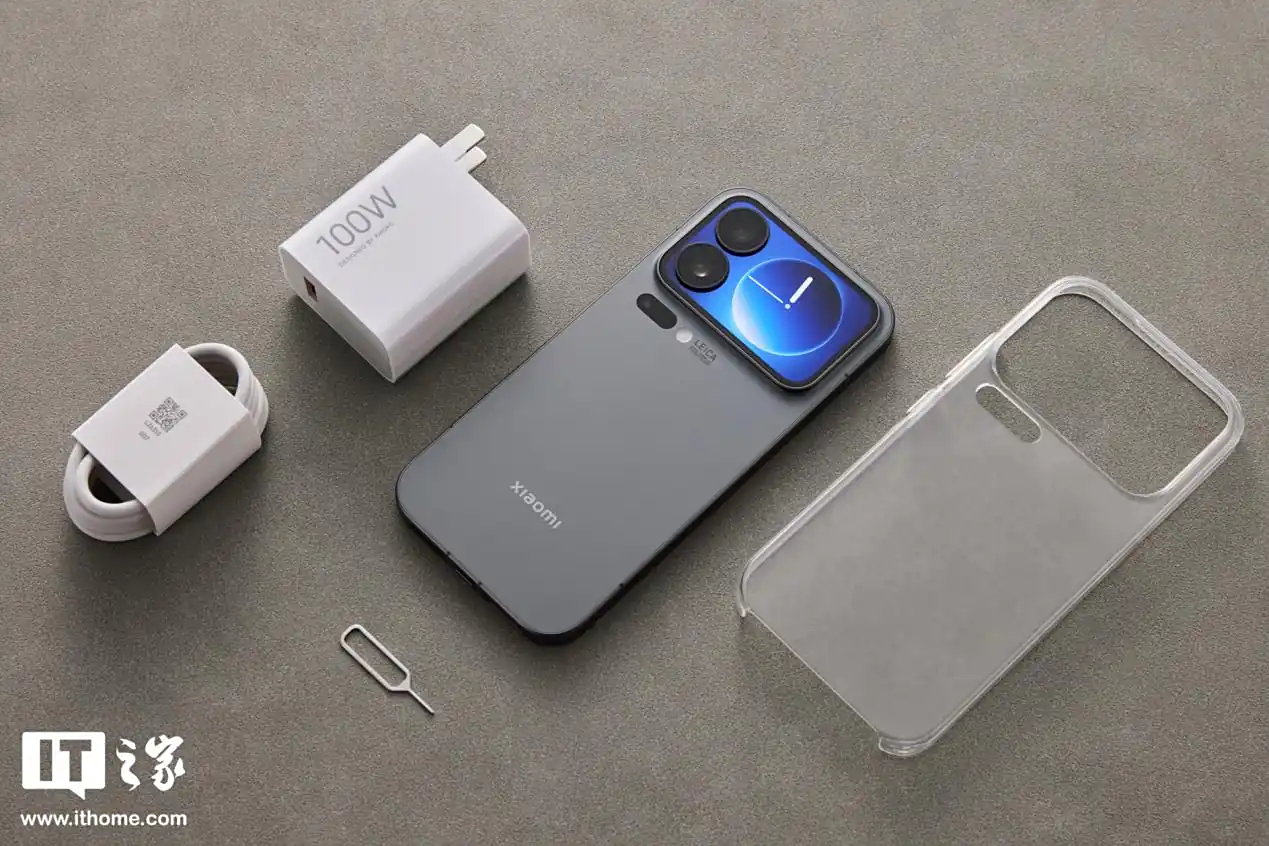 配件方面,小米 17 Pro 随机附赠了 100W 的充电头、数据线、透明手机壳以及取卡针。
