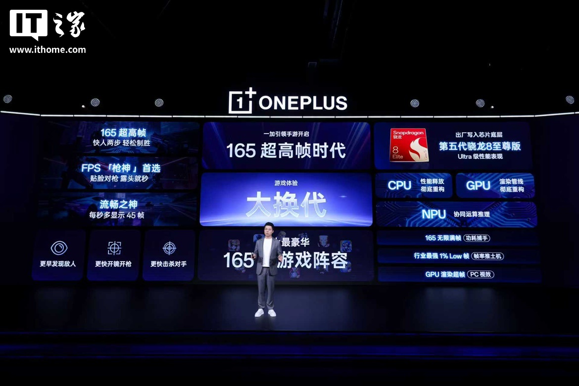 一加中国区总裁李杰在技术发布会上表示,165Hz 帧率将显著提升游戏操作精度,FPS 游戏可更早发现敌人,MOBA 游戏利于观察野怪状态,格斗游戏能精准捕捉动作帧。此外,公司同步升级 ” 电竞三芯 ” 硬件方案,强化网络稳定性和触控响应。