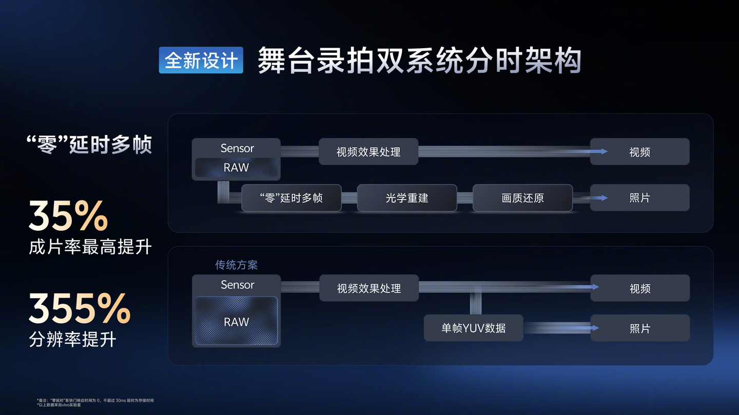 以上算法,依赖 vivo 蓝图自研影像芯片 VS1,这是 vivo 首款前处理大算力 AI ISP 影像芯片。