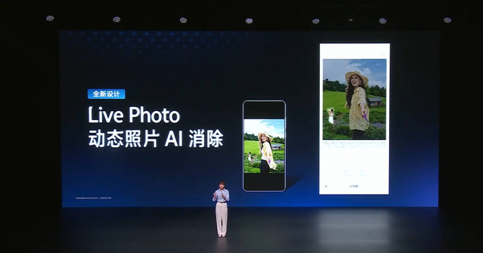 新机的 Live Photo 功能也迎来升级,防抖提升 40%,可以重选封面帧,还可以通过 AI 消除动态照片中的路人。
