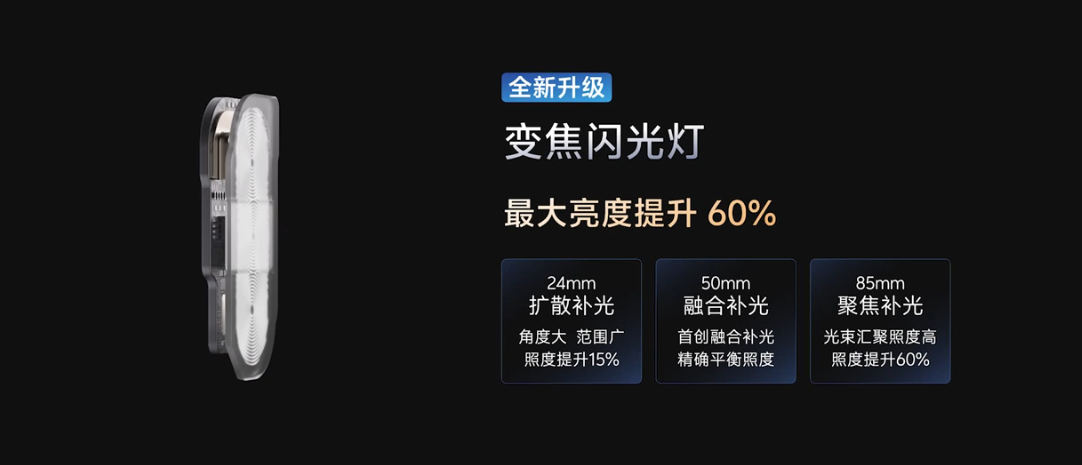 补光方面,vivo X300 系列全新升级变焦闪光灯,最大亮度提升 60%,可根据不同焦段进行补光。