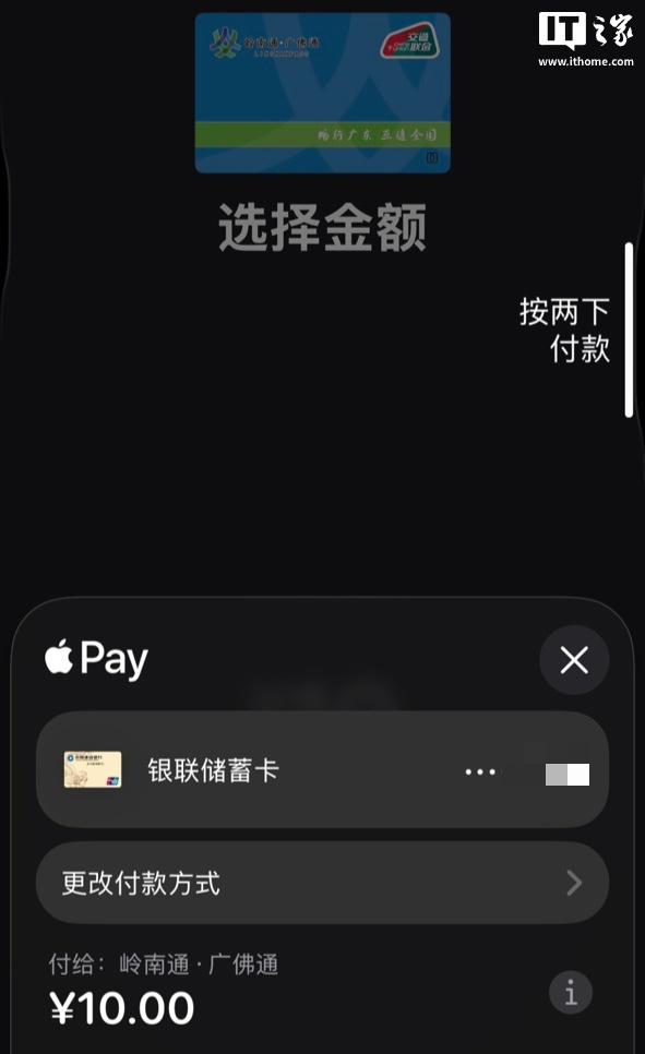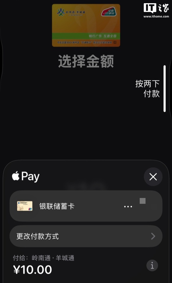 文章来源于互联网:IT之家-原价 20 元:苹果 Apple Pay 版岭南通・羊城通、广佛通交通卡开启免费开卡活动