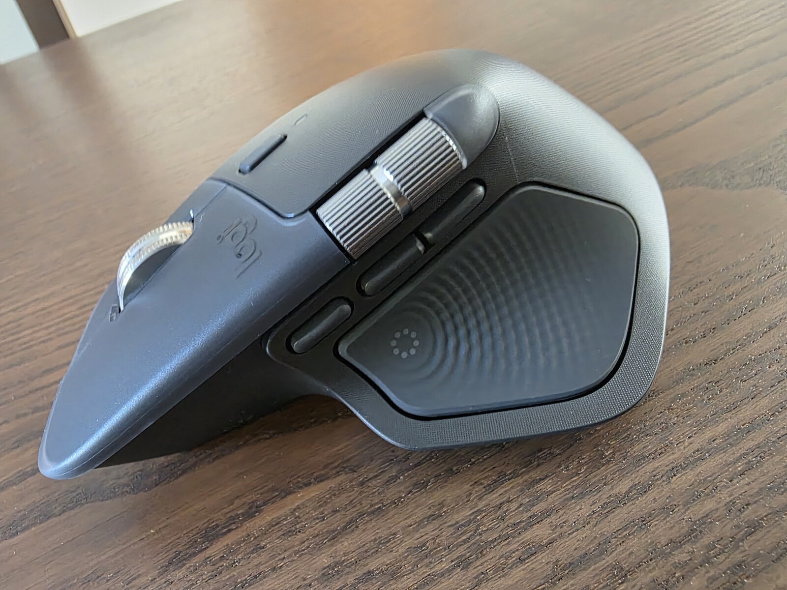 本次升级最显著的变化集中在拇指操控区域。图片显示,MX Master 4 在保留侧边滚轮和多个可编程按钮的同时,新增了一个独立的拇指按键,这或许意味着用户将获得更丰富的自定义操作空间。