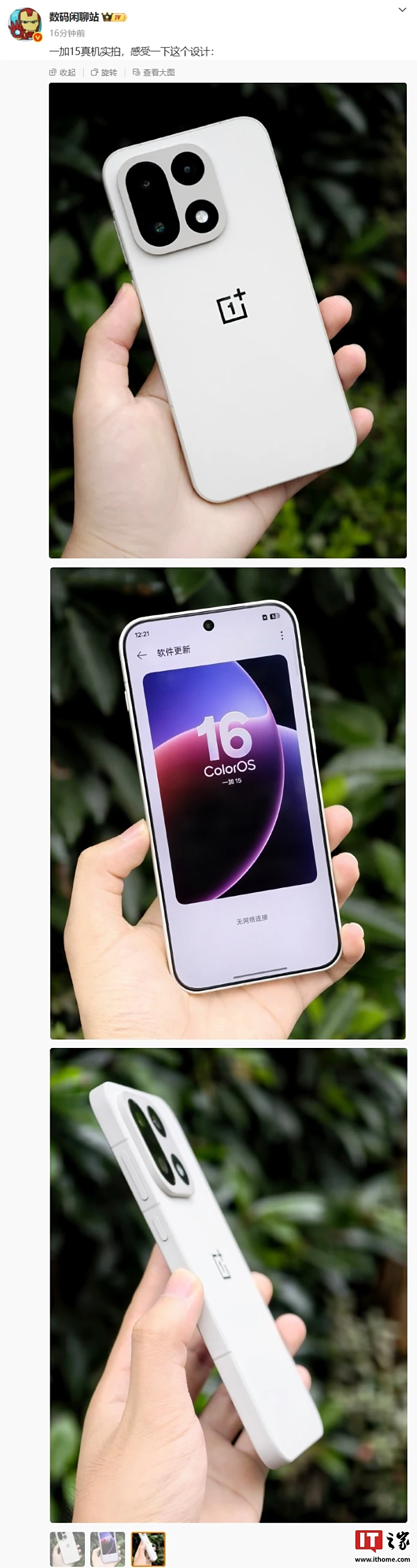 文章来源于互联网:IT之家-一加 15 真机实拍图曝光:四等边大 R 角直屏 + 直角边框设计
