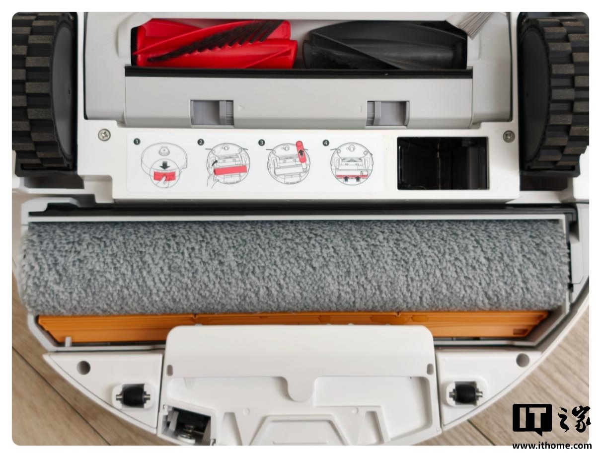 实际测试中,IT之家在地面泼洒了烧烤酱。这类黏稠且附着力强的污渍,对任何清洁工具都是不小的挑战。但面对它,石头 P20 活水版的滚筒能将污渍迅速剥离干净。