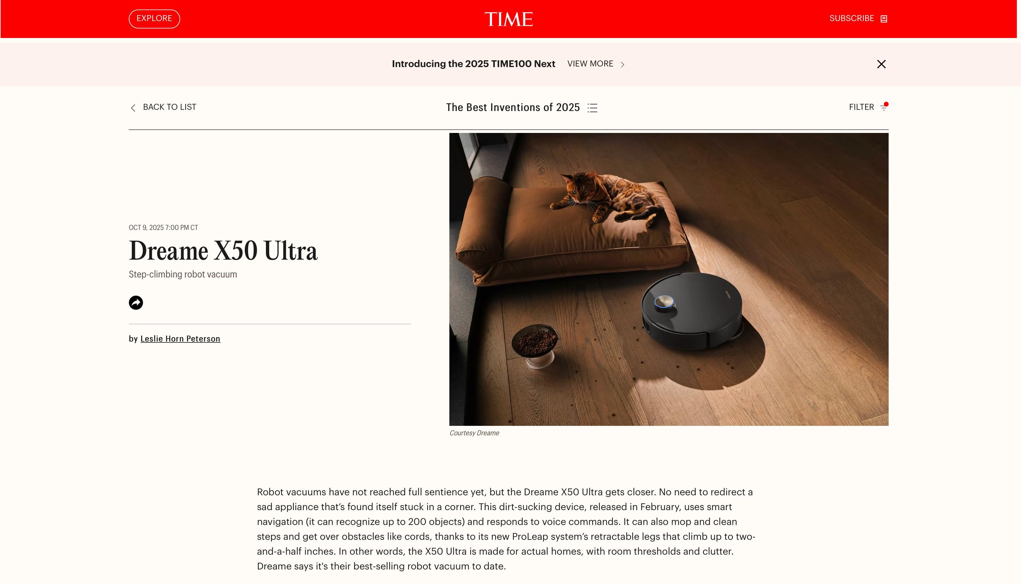 文章来源于互联网:凤凰网-追觅X50 Ultra扫地机器人入选美国《时代周刊》“年度最佳发明”榜单
