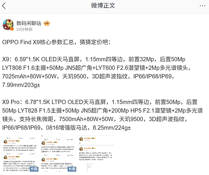 IT之家 10 月 12 日消息,OPPO Find X9 系列手机将于 10 月 16 日 19:00 发布,首批搭载天玑 9500 旗舰芯,博主 @数码闲聊站 今日将该系列新机的参数进行了汇总。