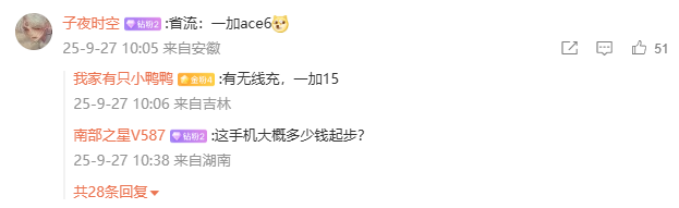 博主 @数码闲聊站 上个月曾爆料某厂骁龙 8 至尊版新机(SM8750)搭载 7800mAh 电池 + 120W 有线快充,评论区网友推测为一加 Ace6。