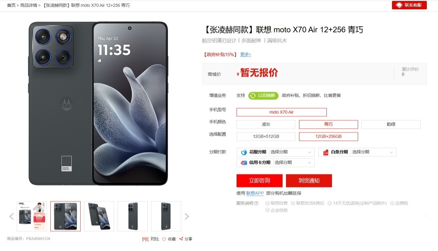 文章来源于互联网:凤凰网-联想moto X70 Air手机现身:5.3mm超薄机身159g轻盈重量