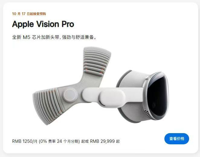 文章来源于互联网:凤凰网-2025款Apple Vision Pro头显发布:搭载M5芯片,29999元起