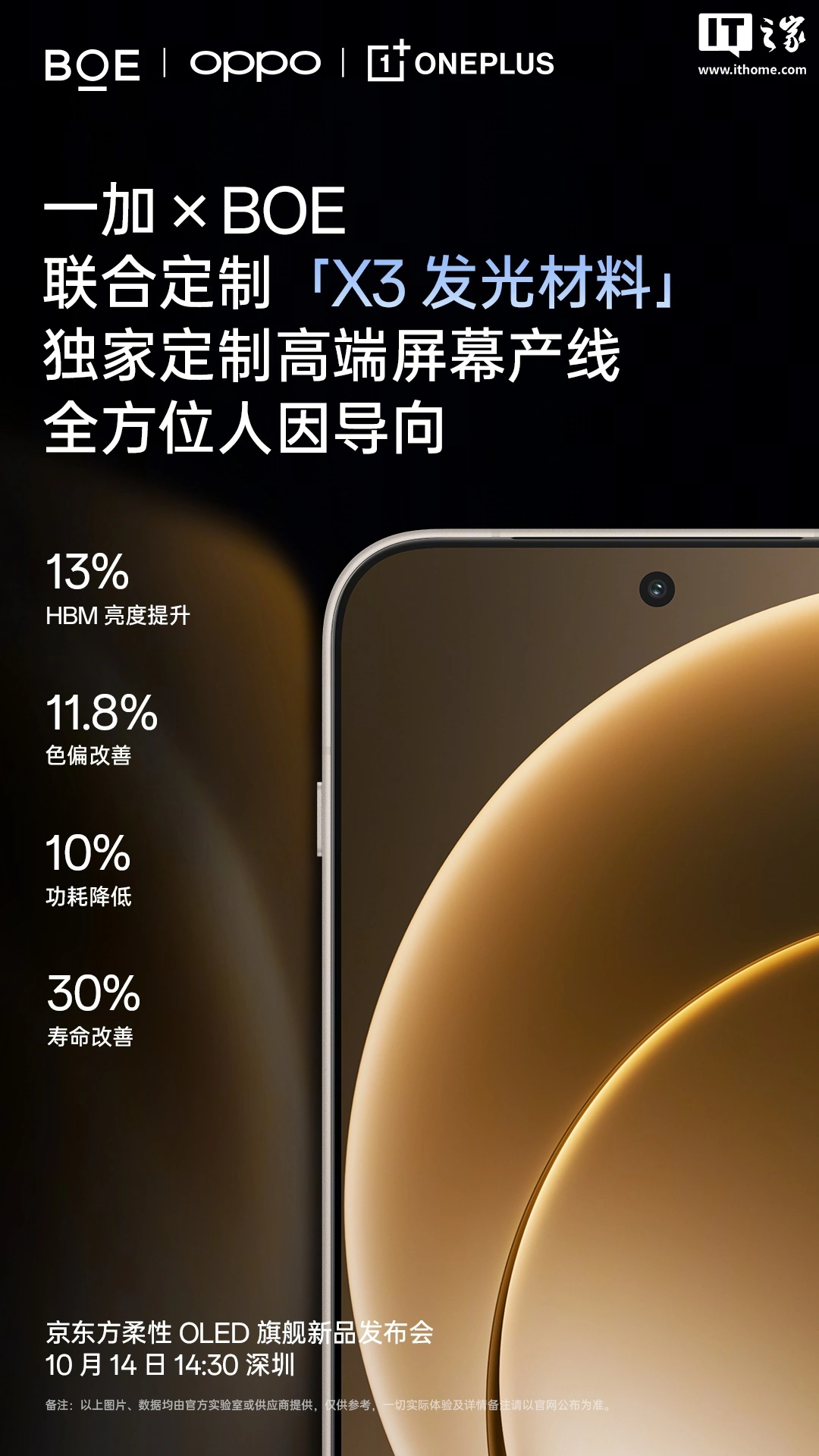 结合IT之家此前报道,一加联合 BOE 定制了 X3 发光材料,使得一加 15 手机的 HBM 亮度提升 13%,色偏改善了 11.8%,拥有“1.15mm 超窄四等边”,支持“行业最好的全场景”真硬件 1nit 暗夜显示,拥有 TÜV 5.0“金标”认证。