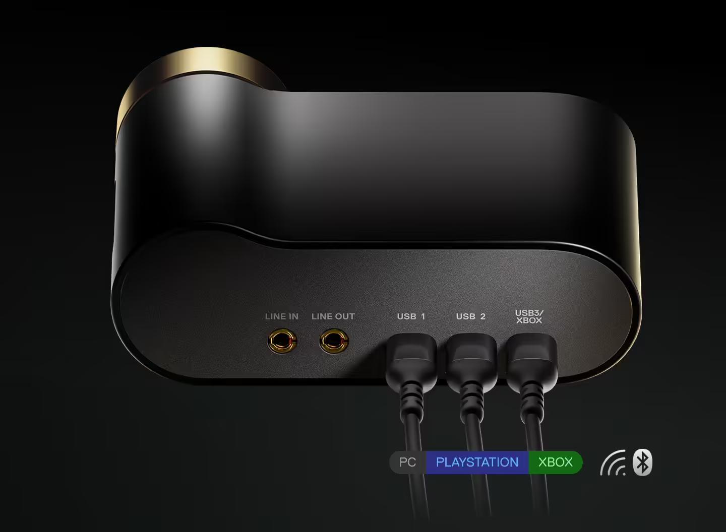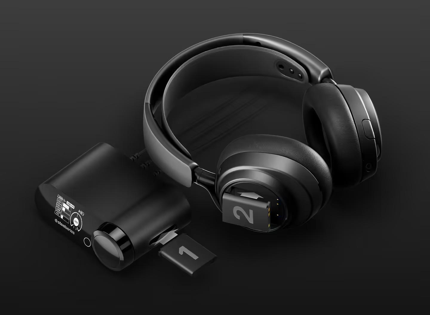 这款耳机具备 2.4GHz 与蓝牙 5.3 + LE Audio 连接能力,支持 LC3+ 编解码与 96kHz 24bit 的音频处理。随附的 GameHub 全能音频中枢可同时连接到四路设备并混合串流,此外还是电池模块的快充仓。