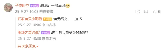 此外,该博主还表示一加 15 和一加 Ace 6 两款新机将“双箭齐发”。其中数字系列定位「性能 Ultra」,思路类似影像 Ultra,把空间全部用在性能、散热、触控等模块并榨到极致;Ace 系列这代是满血满配,核心体验对标竞品 Pro。