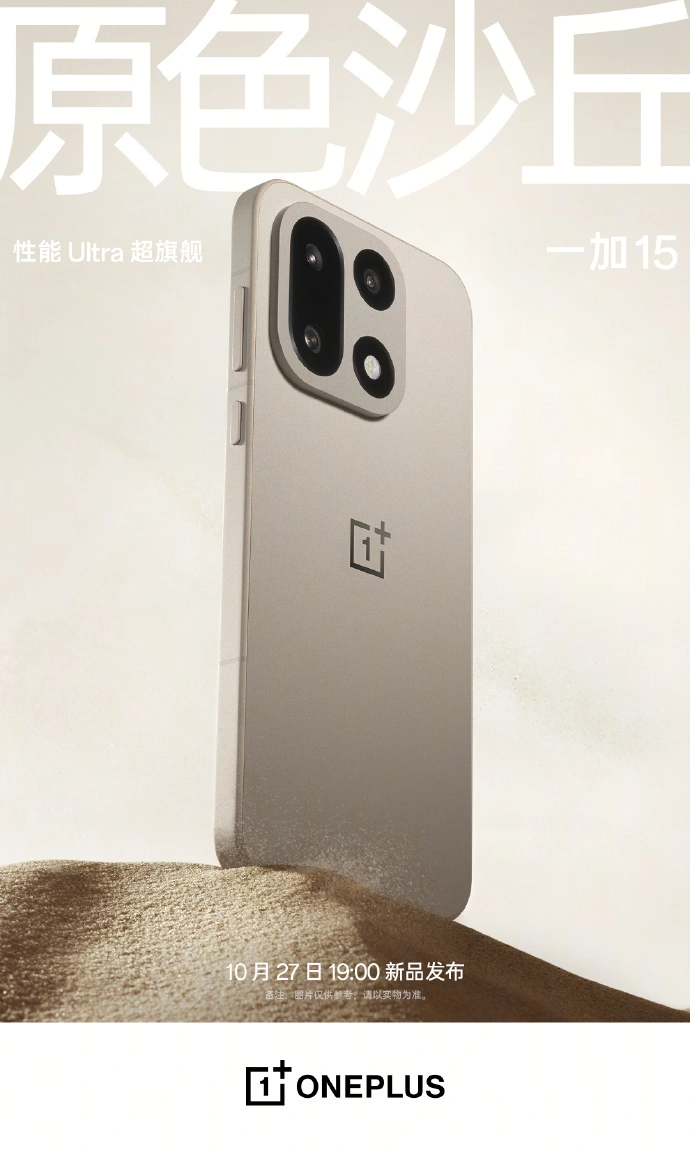 一加 15 手机三款配色已经公布:原色沙丘、绝对黑、雾光紫。其中绝对黑行业首发「全哑丝绸玻璃」,3.7% 超低反射率;雾光紫行业首发「双维流光玻璃」,注入光敏材料,色彩随光而变。