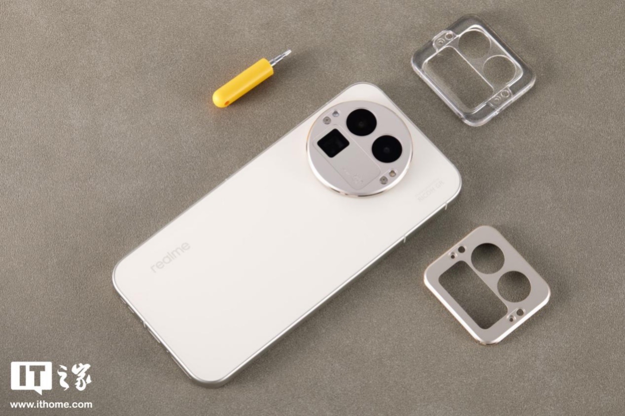 更换真我 GT8 Pro 的 Deco 非常简单。手机包装内会附送一把梅花螺丝刀,卸下镜头旁的两枚螺丝即可更换,还是很方便的。