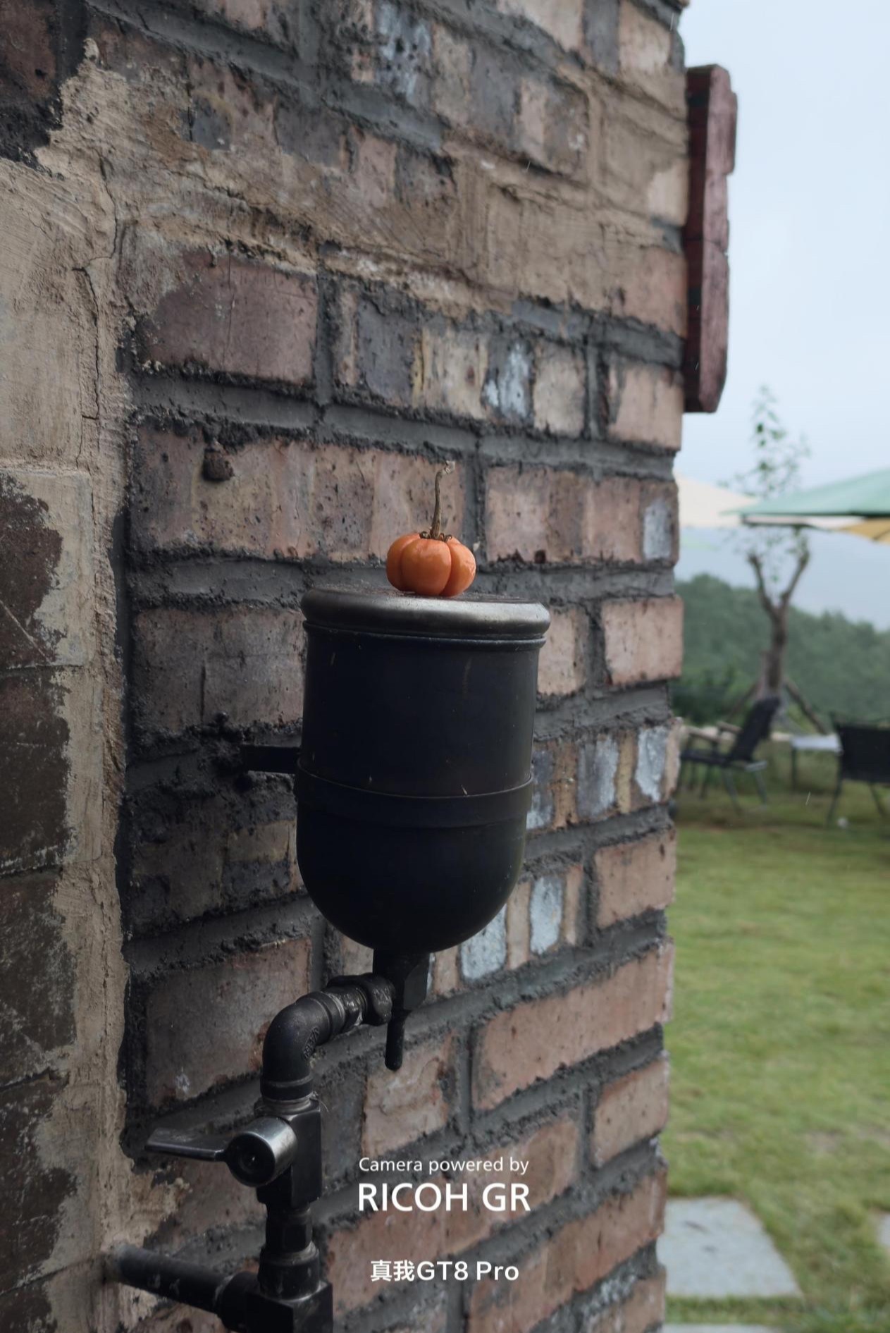 理光 GR 标准风格下画面色彩较为真实,相比直接拍摄数码处理痕迹更少。例如,这张烤炉的照片,远处天空雨后的天青色、近处砖土的纹理细节、管道深邃且纯净的暗部,画面质感十分扎实。