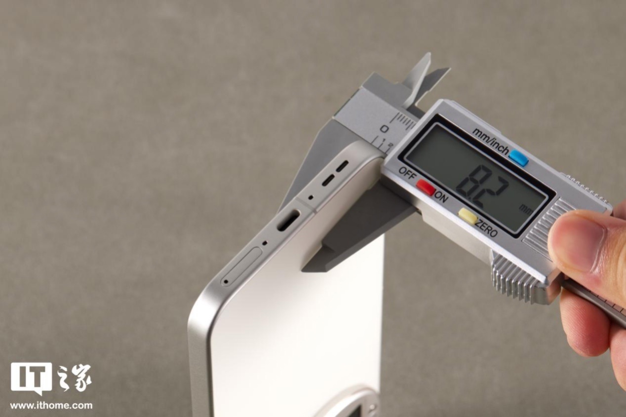 IT之家实测,真我 GT8 Pro 的机身厚度约为 8.2mm,机身重量为 217.2g,因为不同的 Deco 重量不同,所以这个数据仅供参考。