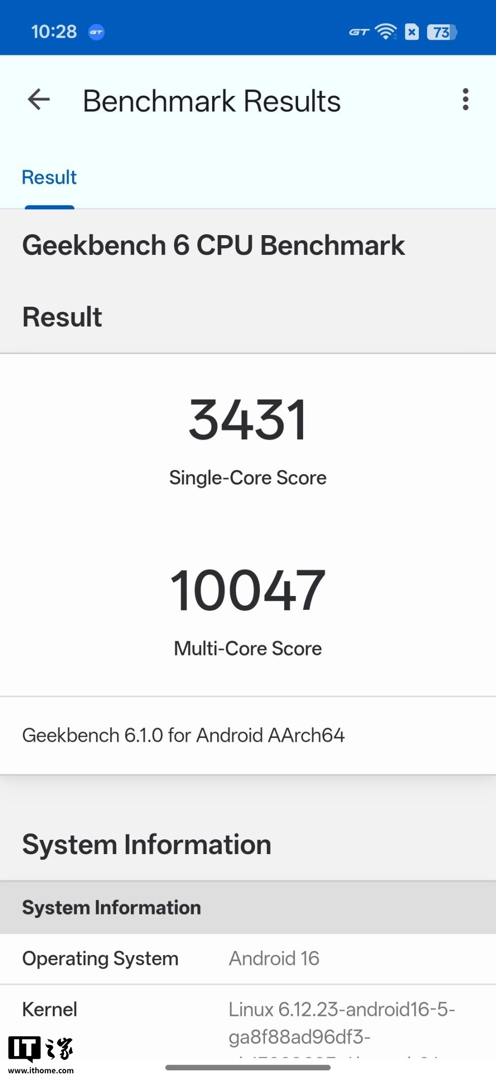 而在 Geekbench 6 的测试中,搭载第五代骁龙 8 至尊版的真我 GT8 Pro 单核得分 3431 分,多核得分 10047 分。