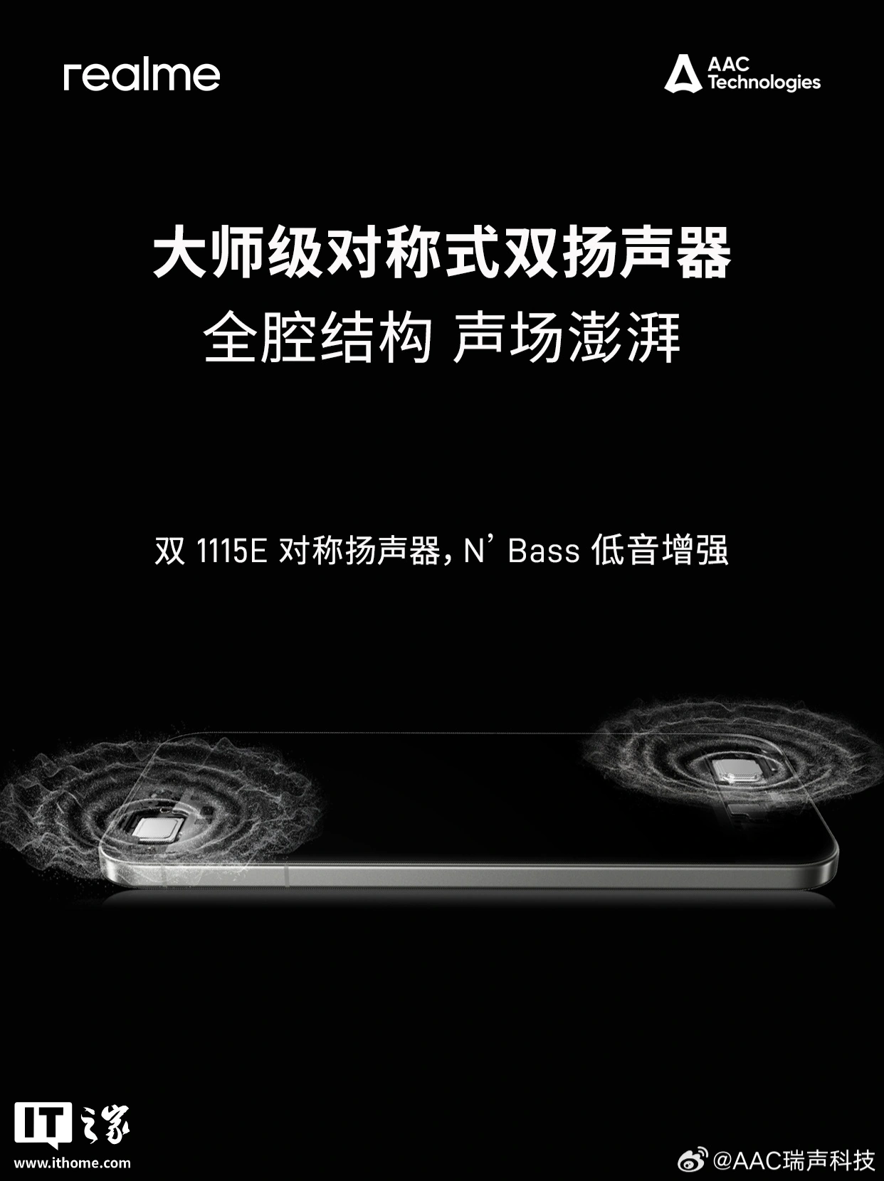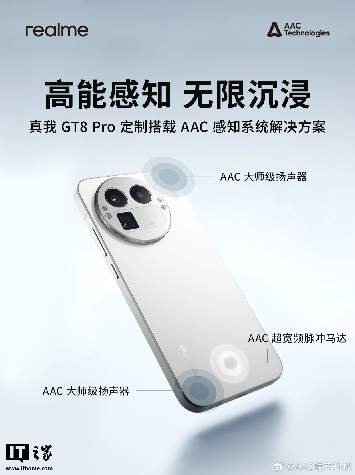 文章来源于互联网:IT之家-realme 真我 GT8 Pro 手机定制搭载瑞声 AAC 感知系统解决方案,含扬声器、马达等