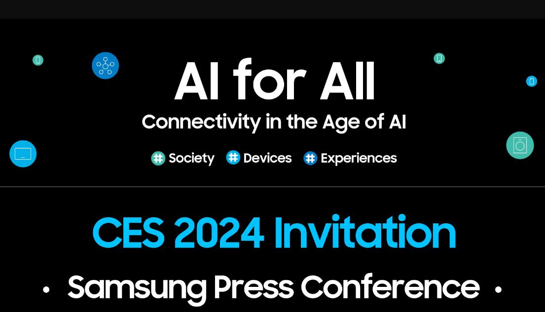 据三星官方Samsung邀请函显示,这场以AI为中心的发布会将于美国东部时间下午5:00/格林威治时间晚上10:00在拉斯维加斯CES 2024上举行。这场名为“人工智能为所有人服务:人工智能时代的连接”的活动将在曼德勒海湾酒店北会议中心南太平洋宴会厅举行。
