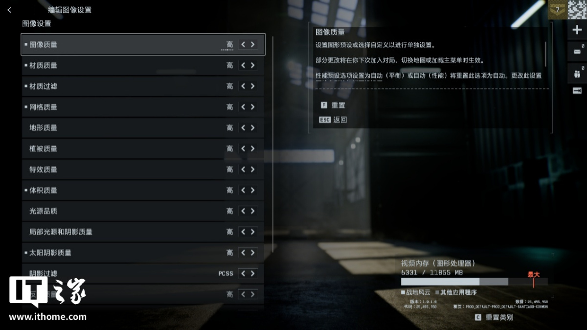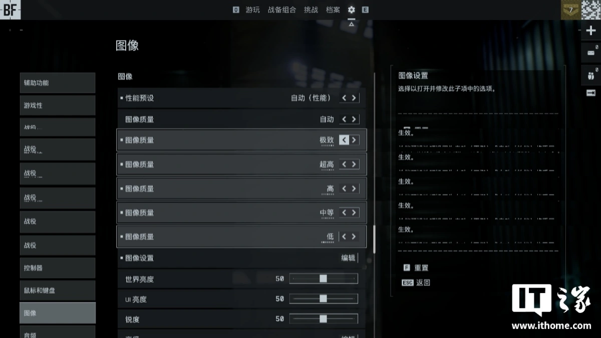 图像质量除自动档外,可设置为极致、超高、高、中等,以及低 5 个预设档位,进阶玩家则可对每个选项单独调节,也就是自定义设置。