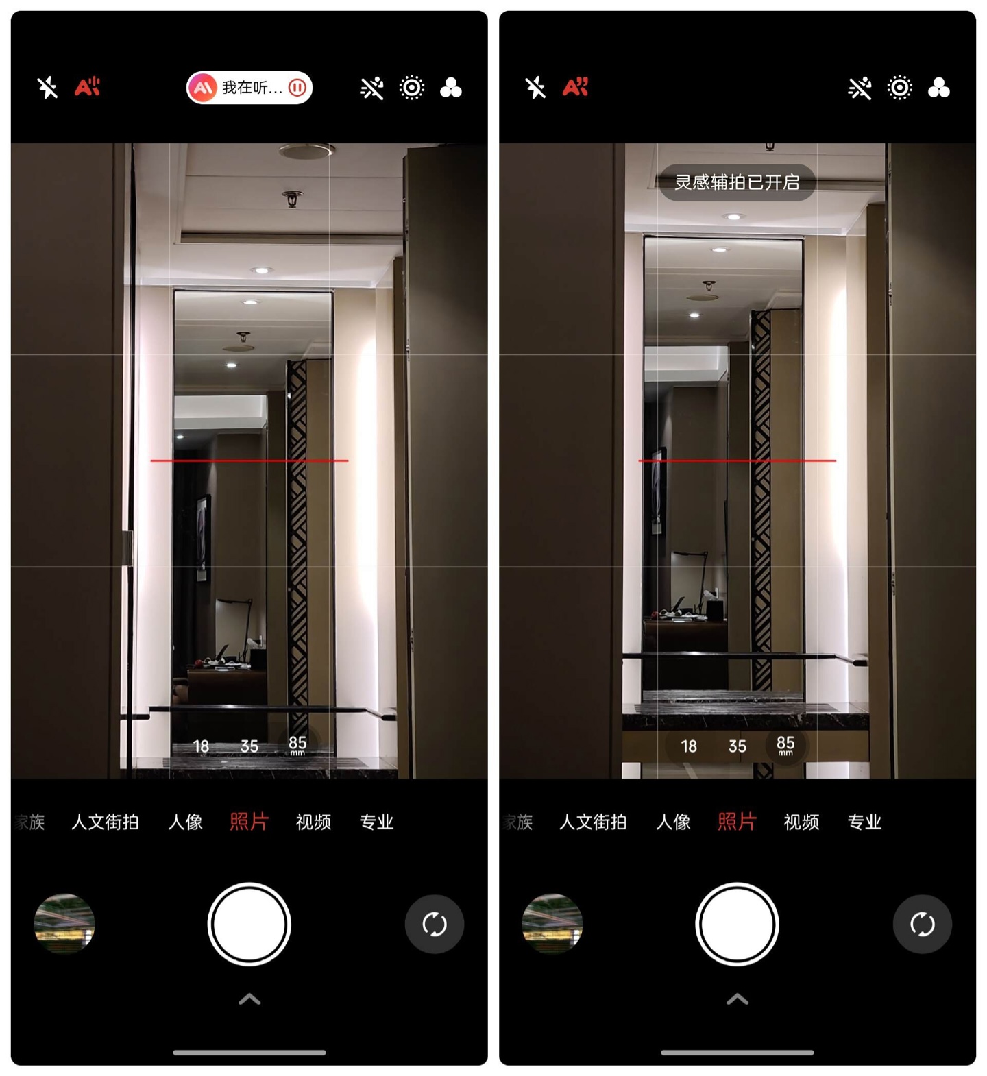 更进一步,AI 甚至加入了“语音导拍”功能。打开相机后,你可以直接开口提问,手机会立刻给出语音指导。这背后,是 AI 影像大模型通过镜头实时分析拍摄画面。