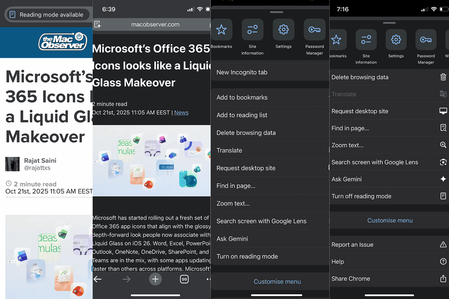 IT之家 10 月 22 日消息,据科技媒体 MacObserver 今天报道,为 iOS 版 Chrome 浏览器引入后,谷歌现在又重新为该浏览器测试阅读模式,可去除网页广告等干扰元素,使阅读文章体验更加专注。