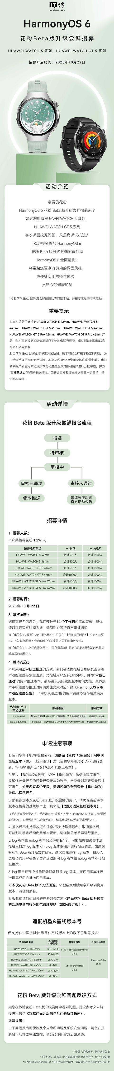 华为官方团队账号 @智能穿戴 今日在花粉俱乐部宣布,HUAWEI WATCH 5 / GT 5 系列产品开启 HarmonyOS 6 花粉 Beta 版升级尝鲜招募。