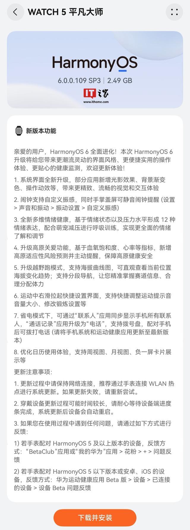 IT之家 10 月 23 日消息,据用户反馈,华为 WATCH 5 系列智能手表已开启鸿蒙 HarmonyOS 6 花粉 Beta 版本(版本号:6.0.0.109 SP3)升级推送,系统包大小约 2.49GB,升级高原关爱功能、越野跑模式、系统界面等。