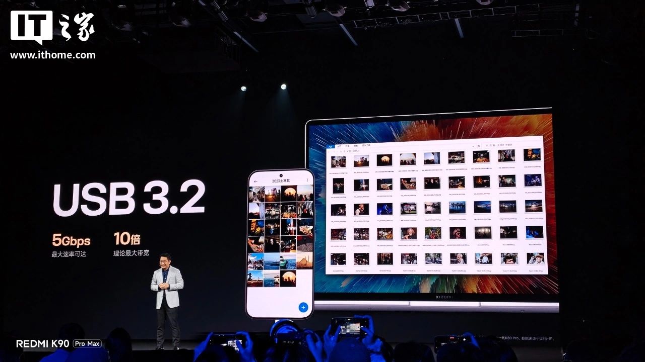 小米 REDMI K90 Pro Max 手机还内置独家 PC 游戏引擎,支持手柄 / 键鼠 / 虚拟按键操作、适配触控振动体验;采用 USB 3.2 接口,最大速率可达 5Gbps。