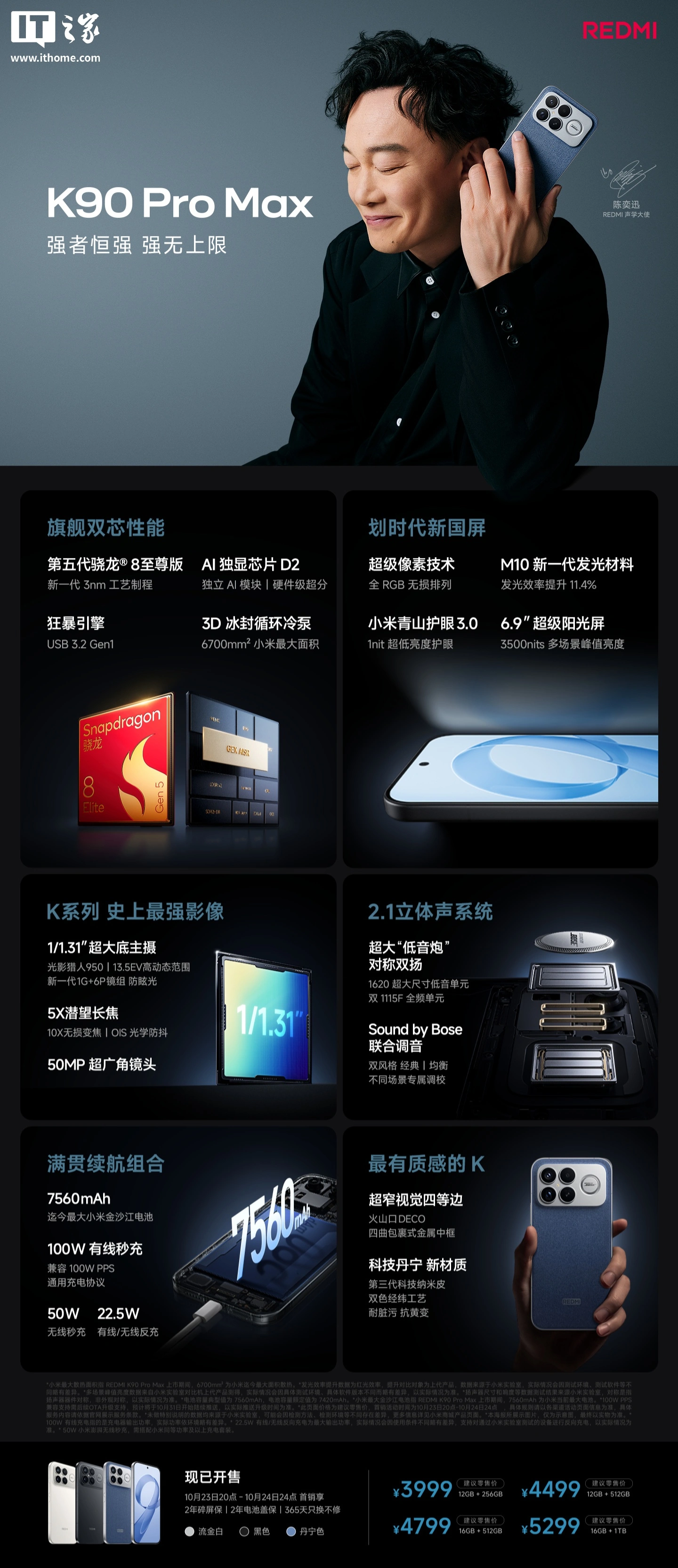 IT之家附小米 REDMI K90 Pro Max 手机核心配置信息如下: