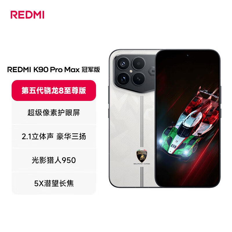 小米 REDMI K90 Pro Max 冠军版手机发布:兰博基尼 SQUADRA CORSE 定制元素设计,5499 元