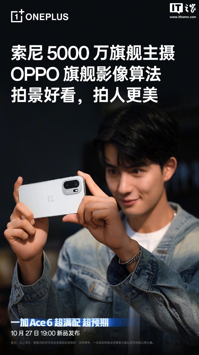 IT之家 10 月 24 日消息,一加官方昨天在微博发文,揭秘 Ace 6 手机的影像能力,搭载索尼 5000 万像素旗舰主摄、OPPO 旗舰影像算法。