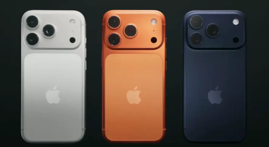 iPhone 17 Pro 系列首次采用一体成型的 iPhone 航空级铝合金机身,配备 iPhone 迄今最大的电池,以及 VC 均热板,宣称散热效率是钛金属的 20 倍。