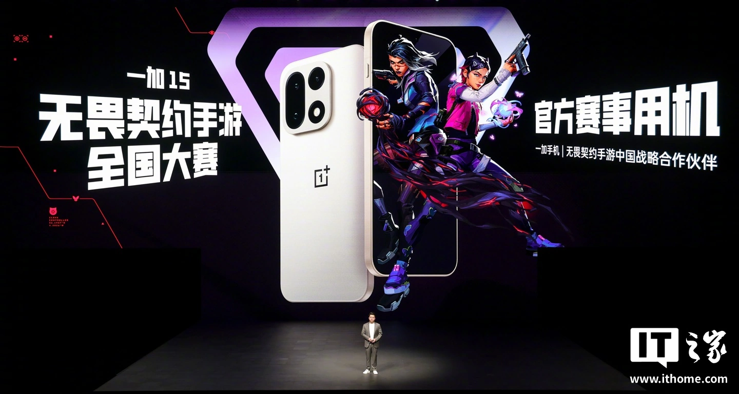 IT之家从发布会现场获悉,一加 15 手机还将成为《无畏契约手游》全国大赛、《和平精英》职业联赛官方赛事用机。