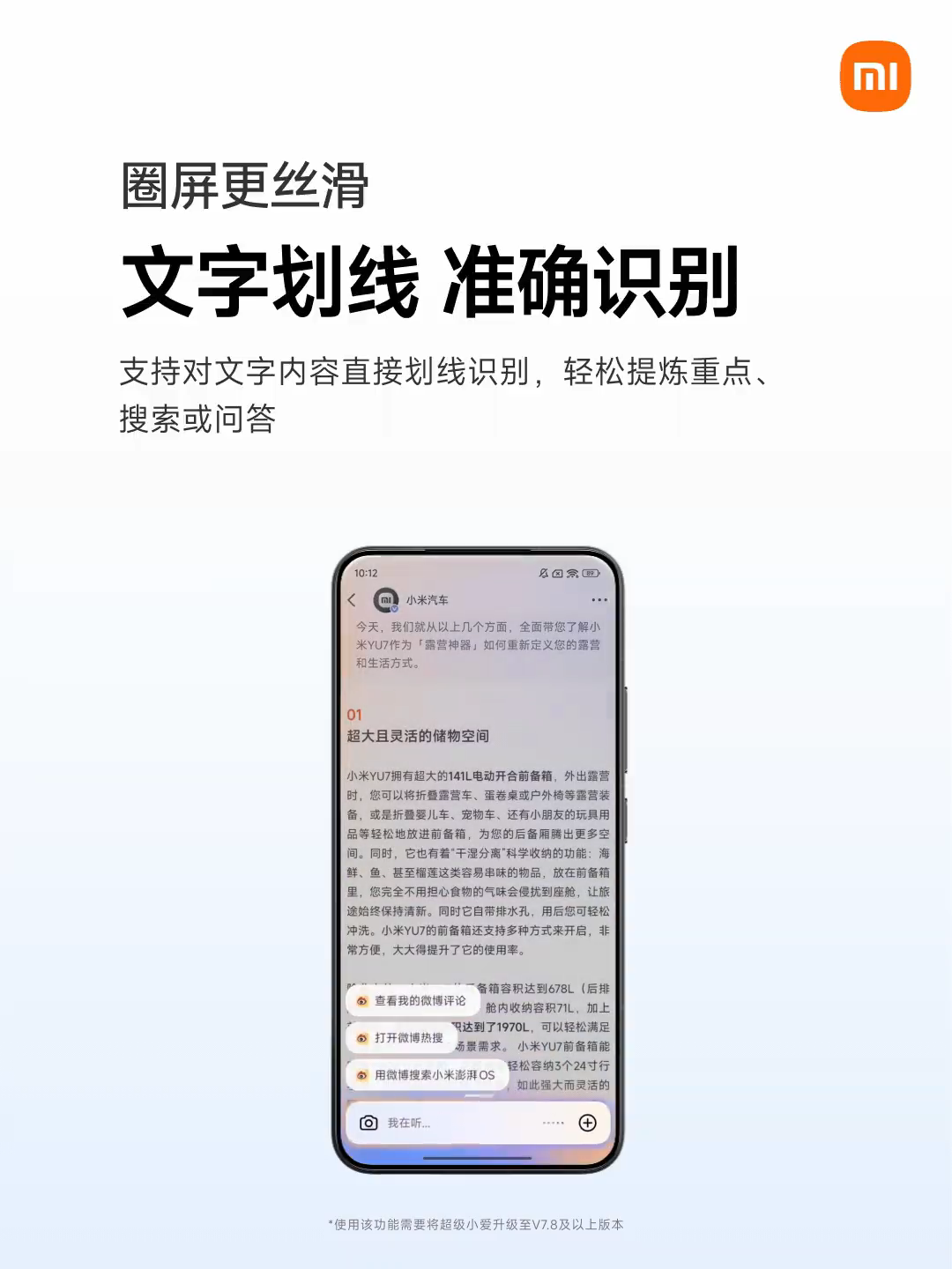 如果想要复制屏幕上的文字,小米用户可以唤醒超级小爱,直接圈选屏幕内容,即可一键保存为图片,或提取复制文字。