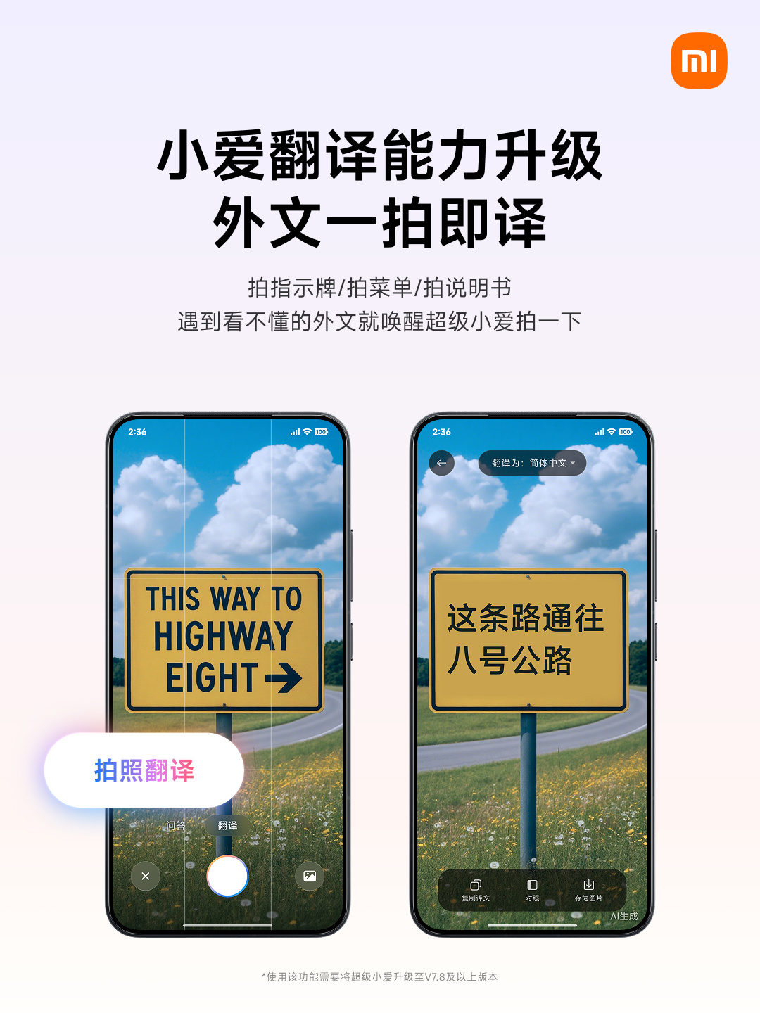 IT之家 10 月 28 日消息,小米今日宣布,超级小爱翻译能力升级,外文内容支持“拍照翻译”,路牌、菜单、说明都能秒懂。