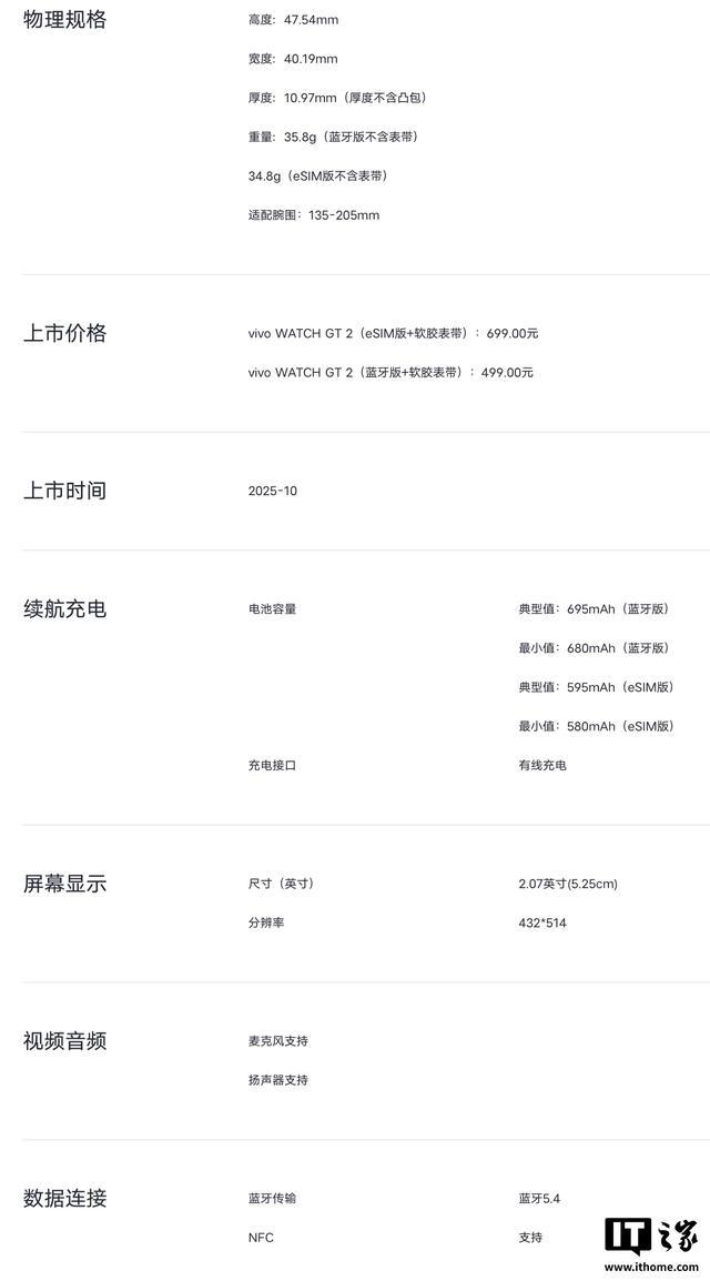 回顾 vivo WATCH GT 2 智能手表,该手表于 10 月 17 日开售,蓝牙版售价 499 元(国补价 424.15 元),eSIM 版售价 699 元(国补价 594.15 元),提供 2400nits 高亮高刷屏 + 全天候健康检测。其中手表 eSIM 版内置 595mAh 电池,蓝牙模式下续航可达 33 天,开启 eSIM 功能后续航根据使用频率,可满足日常 1-2 周充一次电。