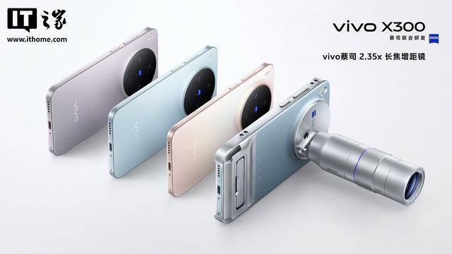 据IT之家此前报道,vivo X300 / Pro 手机于今年 10 月发布,全系支持 X200 Ultra 同款蔡司 2.35x 长焦增距镜,标准版和 Pro 全都有。此次还新推出全新银色配色增距镜,同时全面适配多种拍摄模式,涵盖风光、抓拍、人像、专业、人文等场景,在影像方面继续提高,未来的 Ultra 版有望在影像配置上更进一步。
