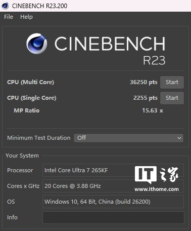 第二个优势是核心数量,这一代虽然去掉了超线程技术,但 20 个核心总数以及 30% 的 E 核 IPC 提升,意味着无论是在需要多核性能的大型游戏还是生产力中都能拥有更高的性能上限。在 CineBench R23 的跑分上,酷睿 Ultra 7 处理器 265KF 的多核分数来到了 36250 分,相比上代酷睿 i7-14700KF 处理器的多核分数(29000 分)提升了 25%,表现出色。
