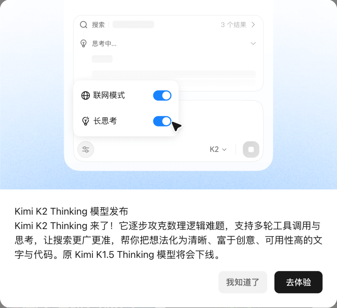 目前,Kimi K2 Thinking 已经在 Kimi 官网的聊天模式上线。