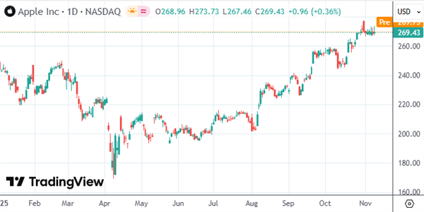 虽然苹果仍被视为潜在的AI受益者,但它既没有沉重的资本支出负担,又拥有雄厚的现金储备。在AI投资情绪降温之际,苹果的股票反而成为科技股中的“避风港”。