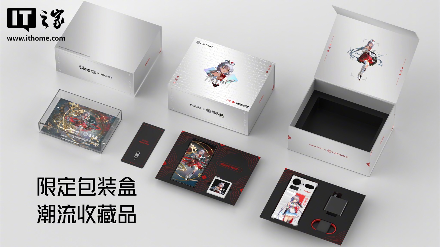 IT之家查询获悉,努比亚 Z80 Ultra 洛天依限定版手机仅提供 16GB+512GB 规格版本,售价 5799 元。该机拥有造型独特的共鸣翼、天依小花和图形元素、专属定制壁纸、开机动画、指纹解锁、洛天依专属水印、联名包装礼盒、洛天依专属插画的亚克力摆台、特别版洛天依手机壳等定制化内容。
