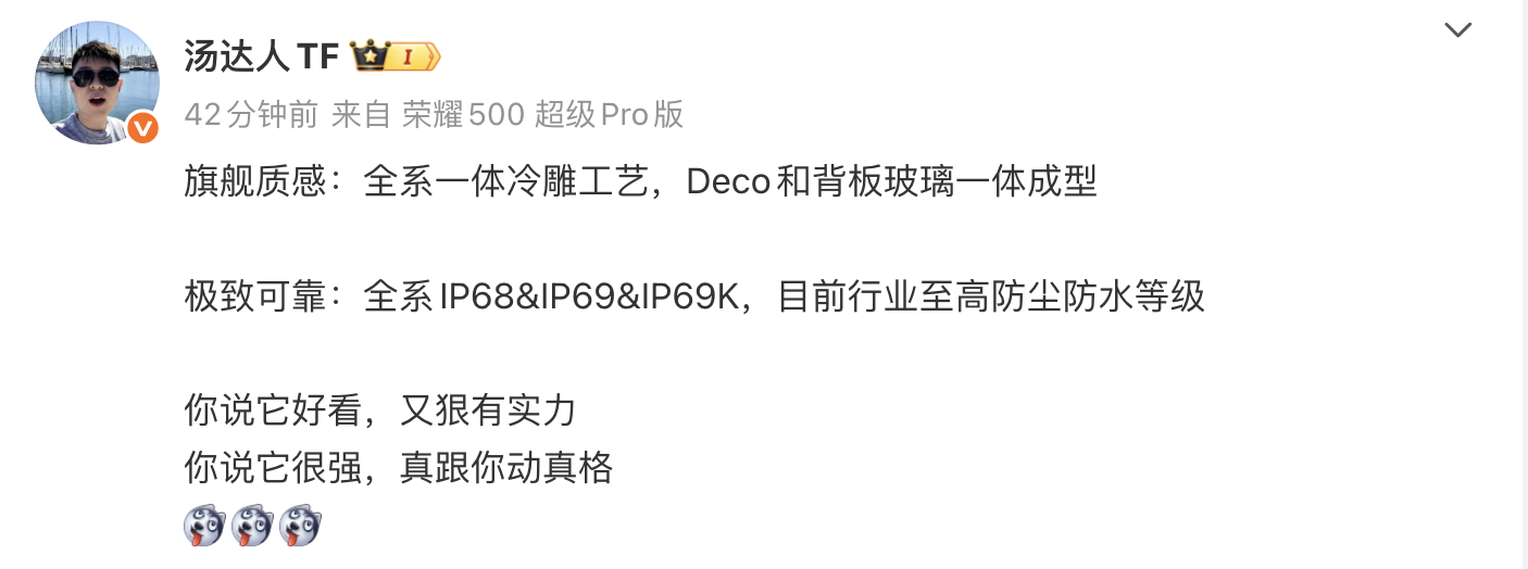机身工艺上,全系一体冷雕工艺,Deco和背板玻璃一体成型,具备IP68&IP69&IP69K防尘防水等级。