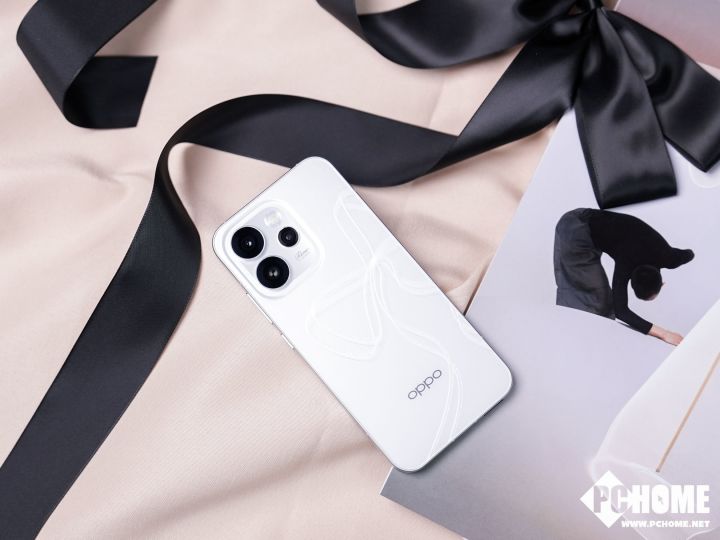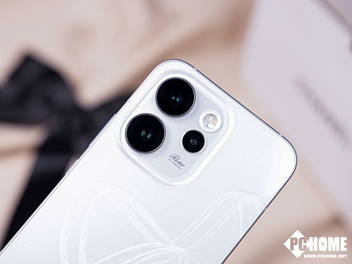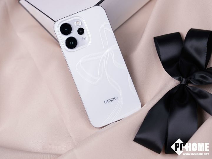 OPPO Reno15的星光蝴蝶结配色以运动芭蕾美学为灵感,在内部雕刻出蝴蝶结造型的细腻丝带,并在闪光砂镀膜上进行雕刻,勾勒出细砂般的闪光视觉效果。后盖覆盖一整块冷雕玻璃,玻璃盖板与镜头组之间是一体式无缝连接,使得整个背部变得通透立体。