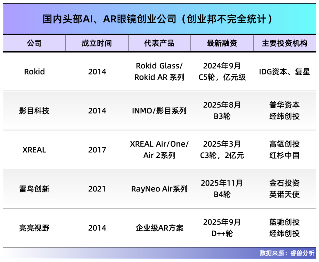 同时,Rokid等原来在AR/VR眼镜领域创业多年的公司,也顺势在2024年~2025年间,利用日益成熟的AI技术,推出AI眼镜。